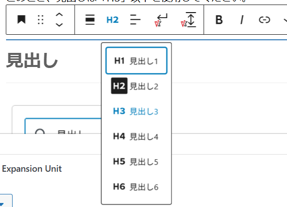 このとき、見出しは「H3」以下を使用してください。